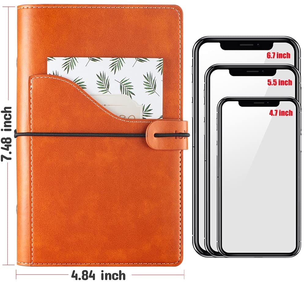 Orange premium soft-touch PU leather. Pocket in front design: You can put tickets passport and max 6.7 inch phone inside.