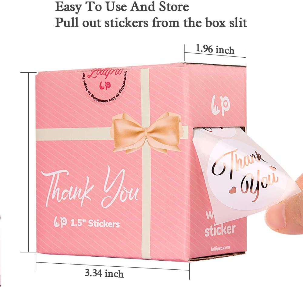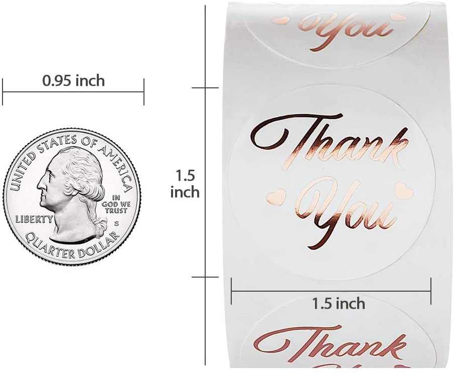 ---------------------Product Name: Bronze Gold Foil Letters Printed, Hot foil stamping gilded pattern of Thank You-----------------------------------------------Package Includes: 1 Roll=500 PCS x 1.5 Inch, With LOLLIPRO Brand Packing Box----------------------------------------------------------------Widely Used: Suitable for cards, scrapbooks, jewelry boxes, envelopes, packaging business cards, packaging box, receipts and so on ;