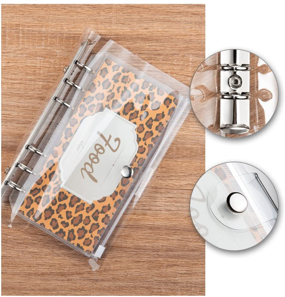 A6 Small 6 ring personal size portable 7.68 x 4.8 inch, convenient for travel home, office and school, easily fits in your handbag, backpack, suitcase or desk. Waterproof clear soft-touch PVC binder cover,can hold 80-100 sheets Paper or budget envelope or other insert pages as your like.