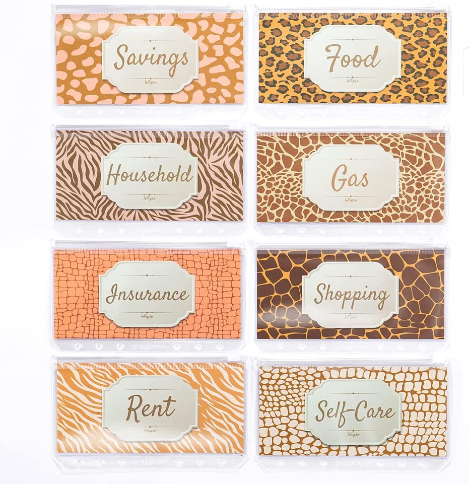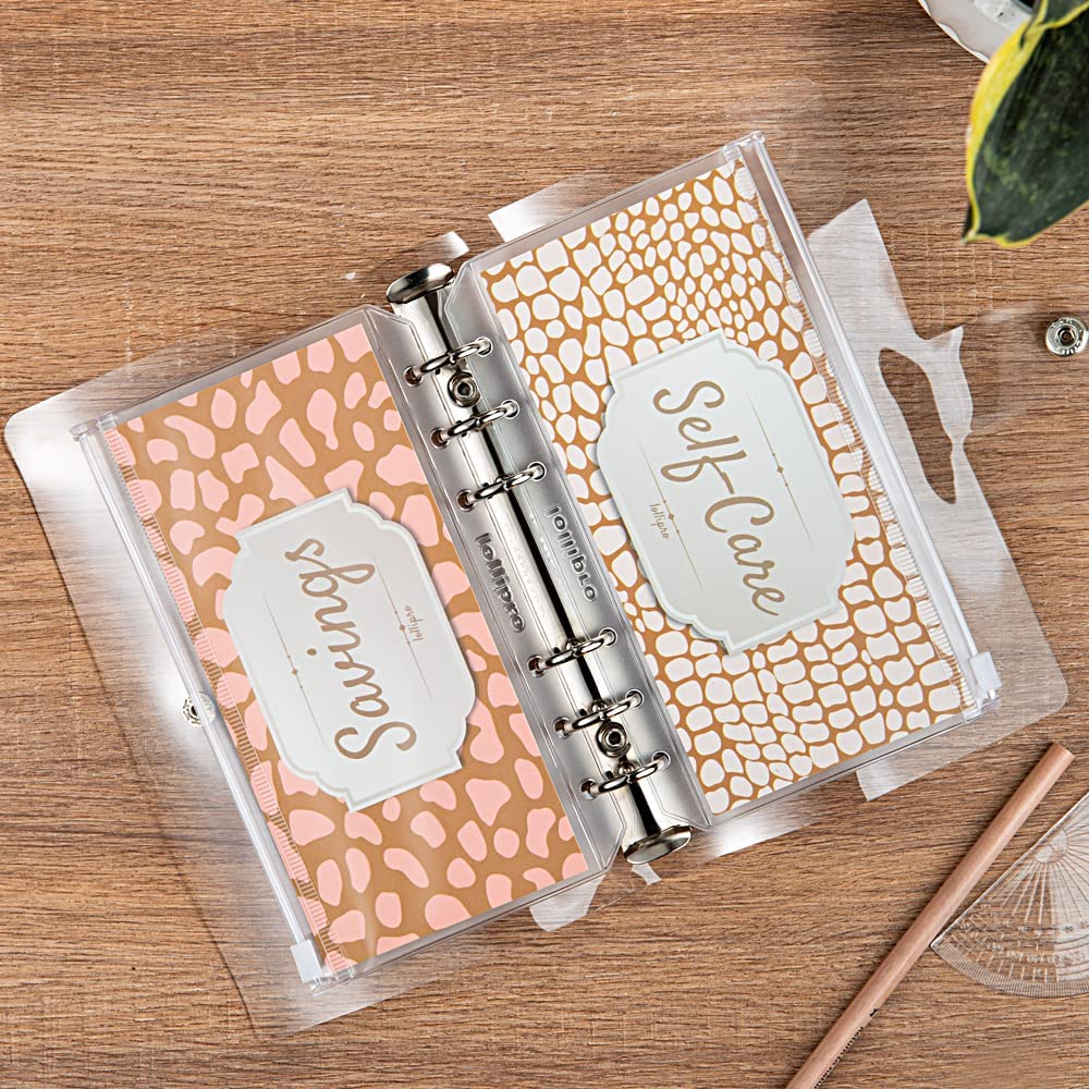 Lollipro Small A6 Saving Money Organizer Refillable 6 Ring Clear Budget Binder Notebook Wallet with 8 Pcs Waterproof Envelopes Inside Cash Break Down Cards and Label Stickers(Animal)