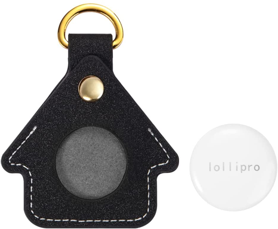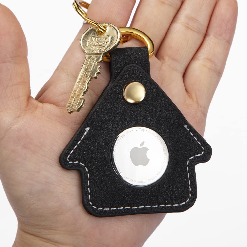 Lollipro Golden KeyRing And Glitter Faux Leather Cute Houselet Looking Case For Airtags With Airtags Screen Protector, Color Black