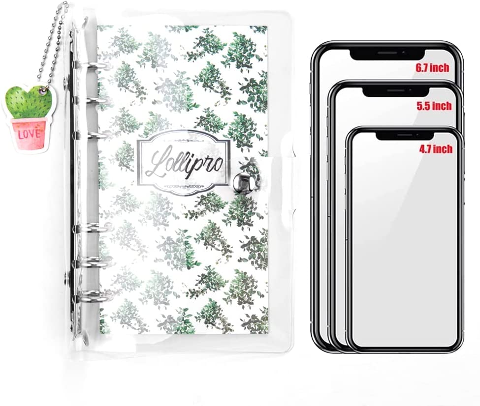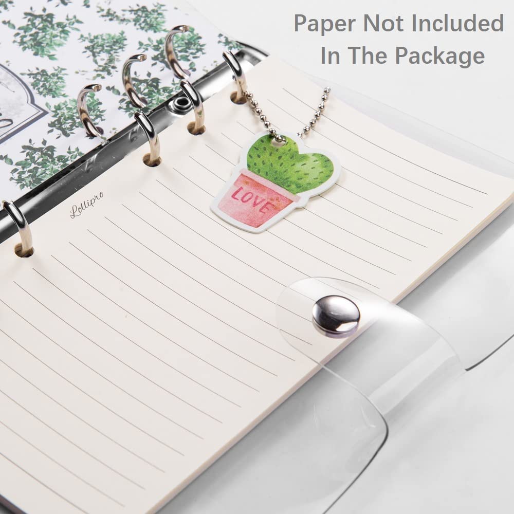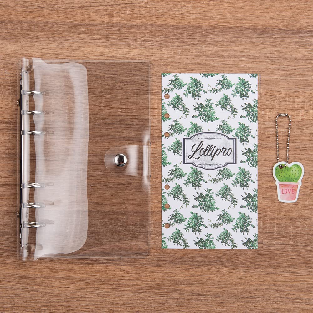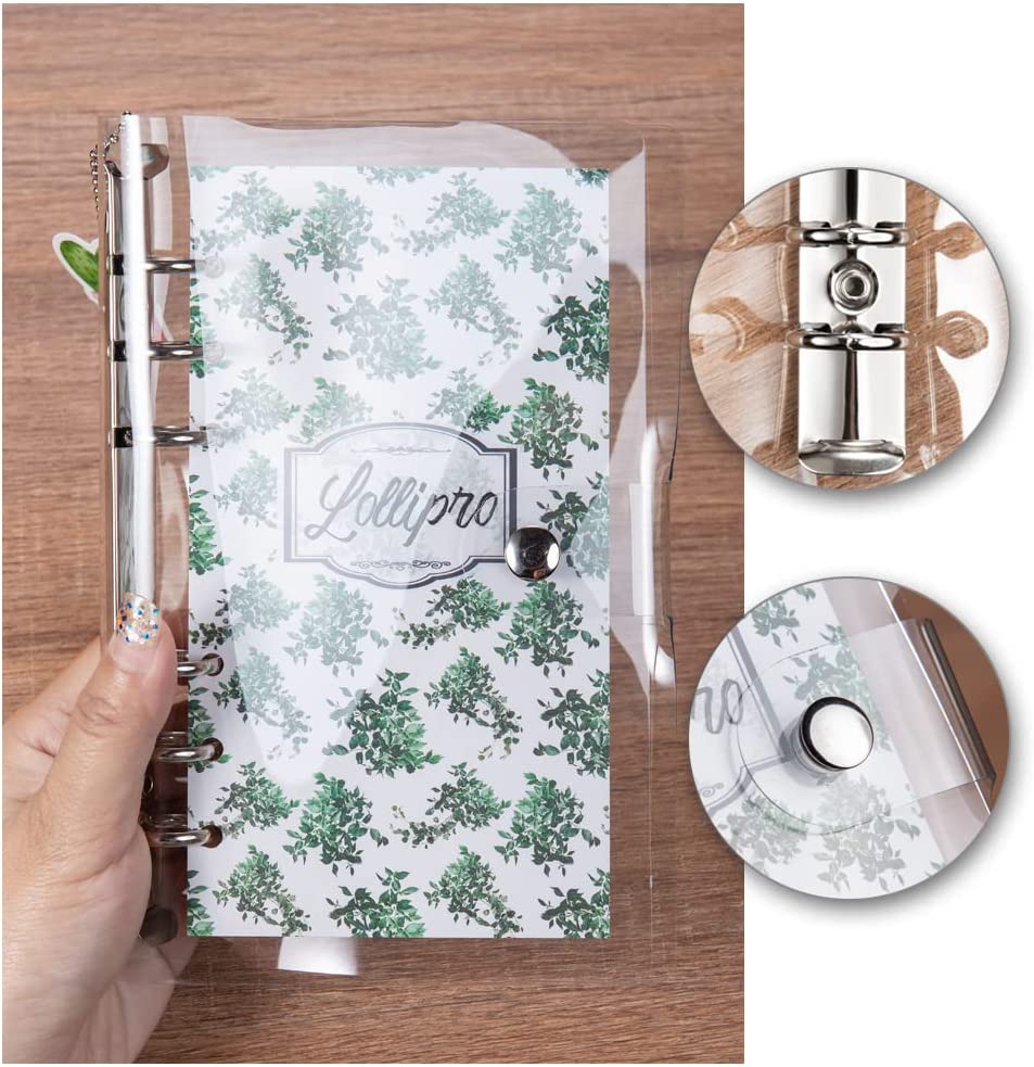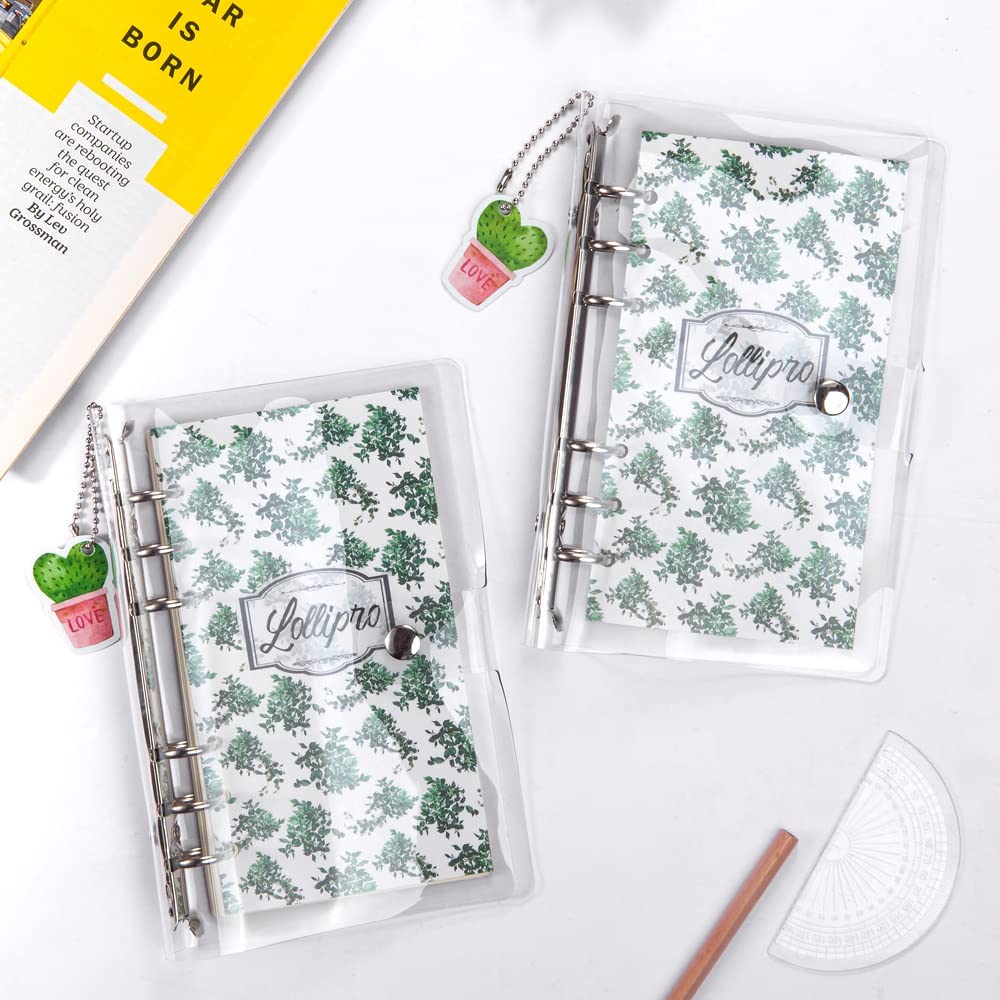 Lollipro 2 Pack Small A6 Binder (Cover Only) PVC Clear Planner (7.7×4.9 inch) 6 Ring Refillable Notebook Journal Planner with Keychain,Leaves