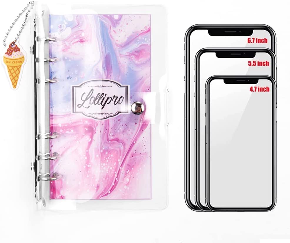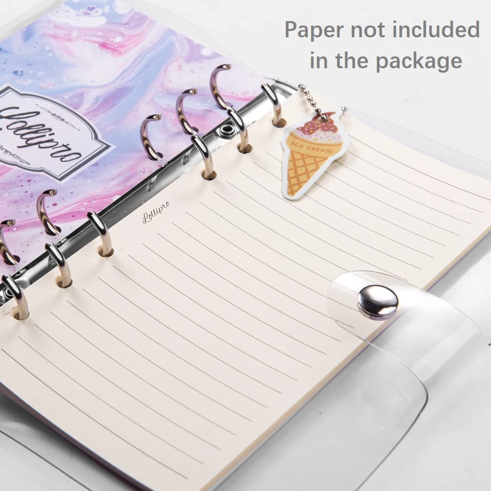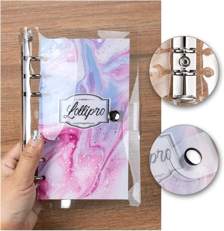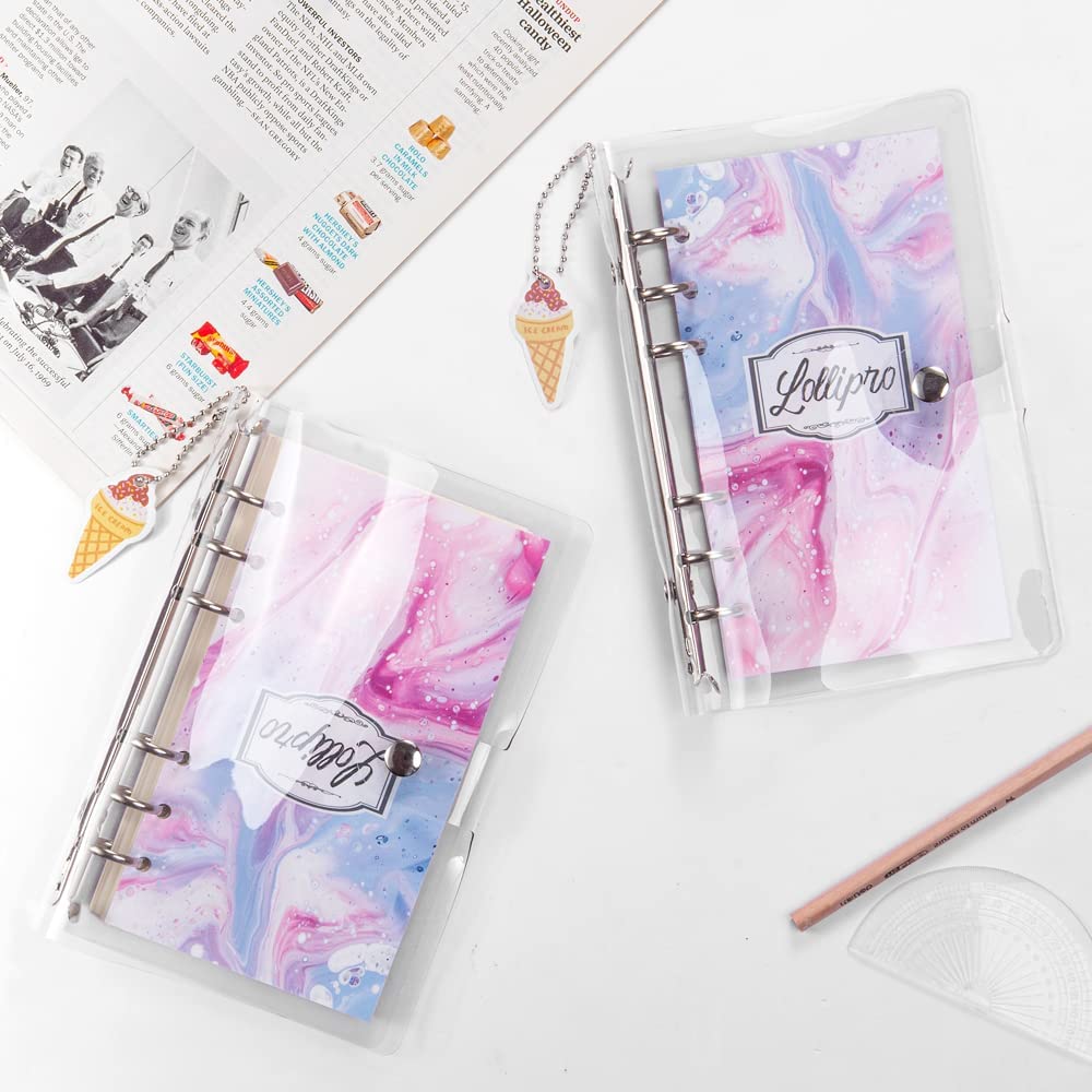 Lollipro 2 Pack Small A6 Binder (Cover Only) PVC Clear Planner (7.7×4.9 inch) 6 Ring Refillable Notebook Journal Planner with Keychain, Gradient