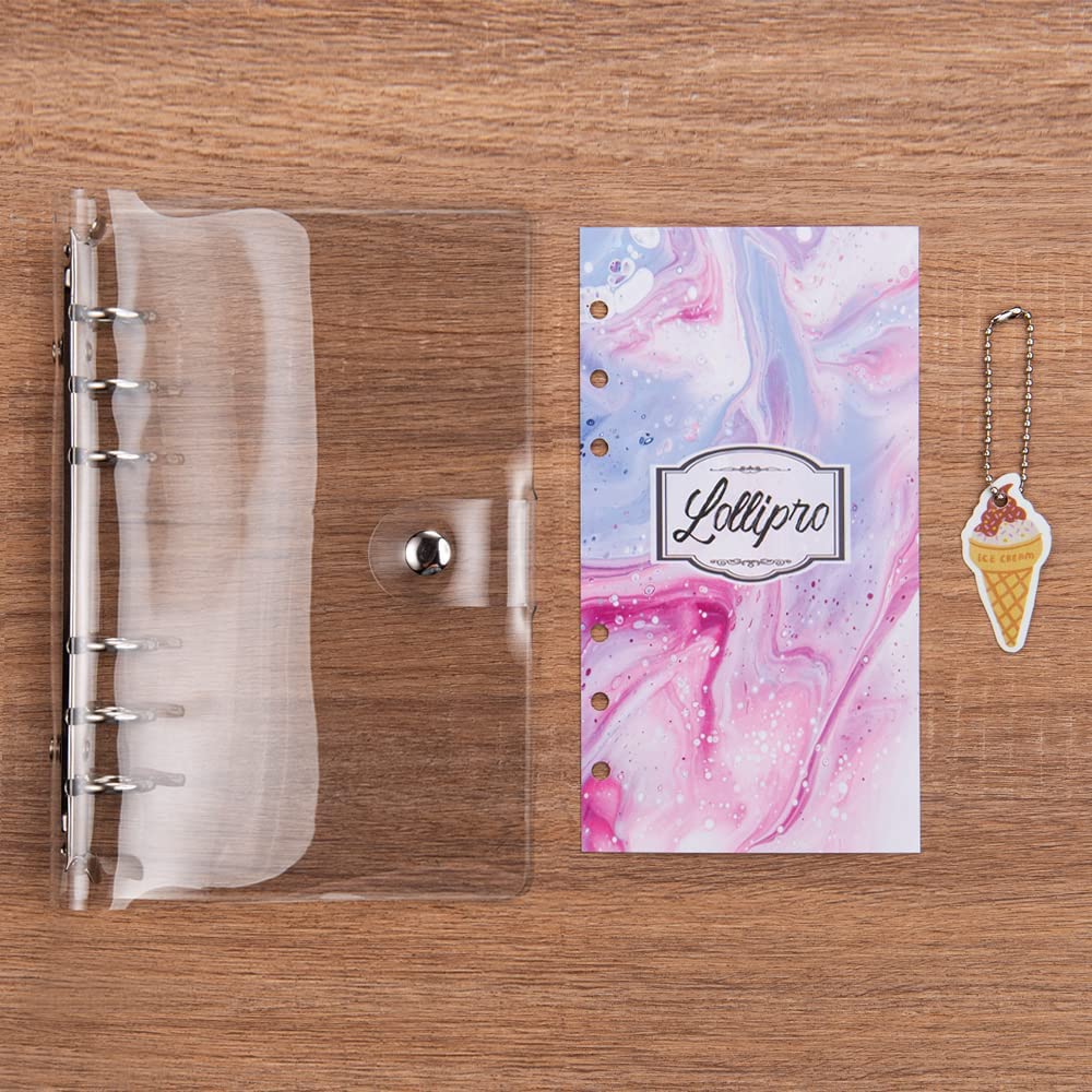 Lollipro 2 Pack Small A6 Binder (Cover Only) PVC Clear Planner (7.7×4.9 inch) 6 Ring Refillable Notebook Journal Planner with Keychain, Gradient